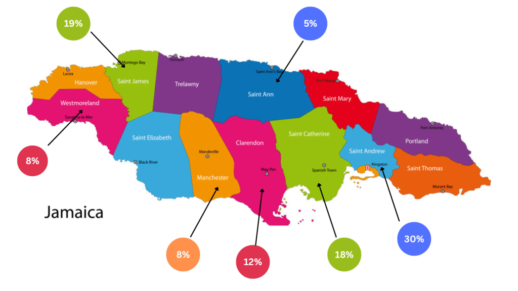 221 Supermarkets island-wide with 63 in our capital, Kingston and 54 in our closest parish, St Catherine.